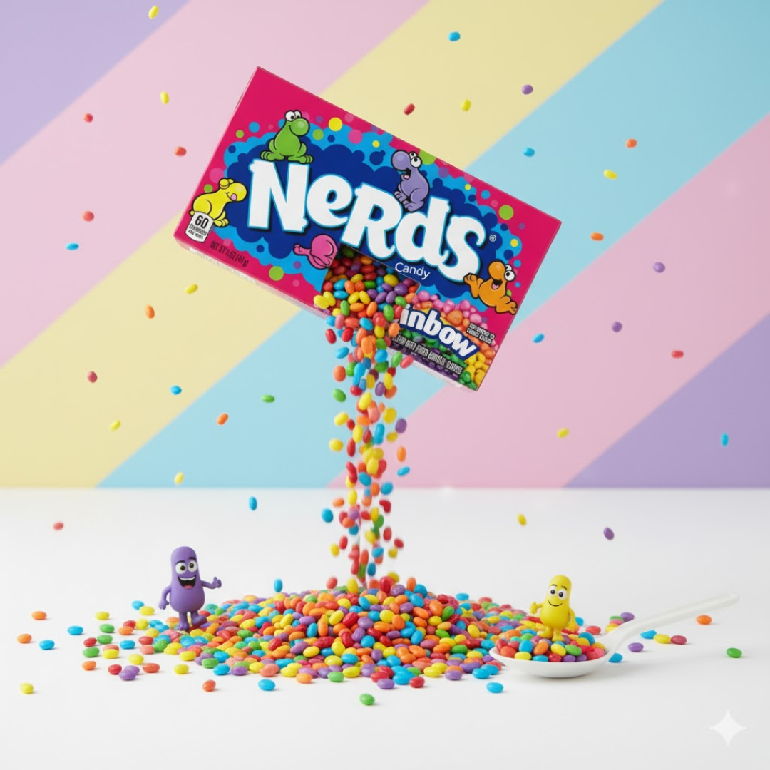 A Bala Nerds Rainbow 141g é uma guloseima crocante e divertida, que combina sabores intensos de frutas sortidas em pequenos cristais coloridos. Ideal para quem busca uma experiência doce e ácida ao mesmo tempo, é perfeita para lanches rápidos, festas ou como lembrancinha.