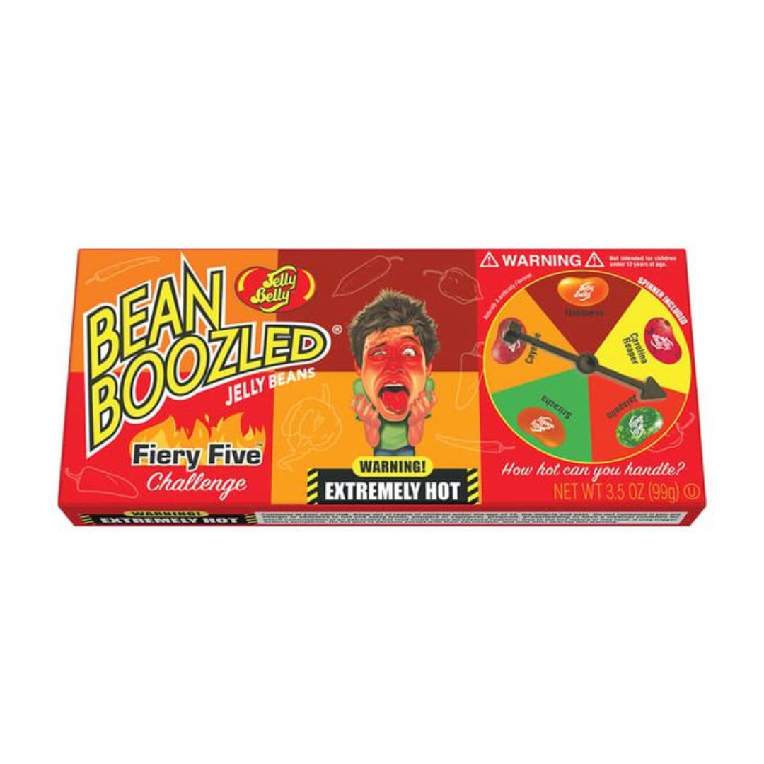 A Jelly Belly BeanBoozled Fiery Five 99g é o desafio mais picante da Jelly Belly! Cada jujuba traz um nível diferente de ardência inspirado em pimentas reais — do leve Sriracha até o intenso Carolina Reaper. Perfeita para quem ama aventuras e quer testar os limites com amigos em um jogo de sabores extremos!
