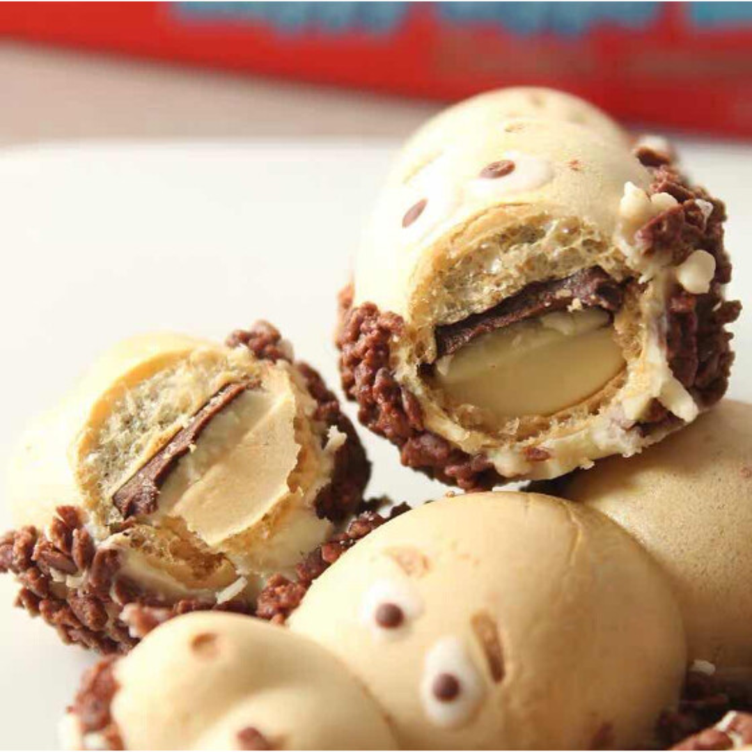 Açúcar, farinha de trigo, gordura vegetal, leite em pó integral, avelãs, cacau em pó, soro de leite em pó, manteiga de cacau, massa de cacau, emulsificante lecitina de soja, fermentos químicos, sal e aromatizantes.