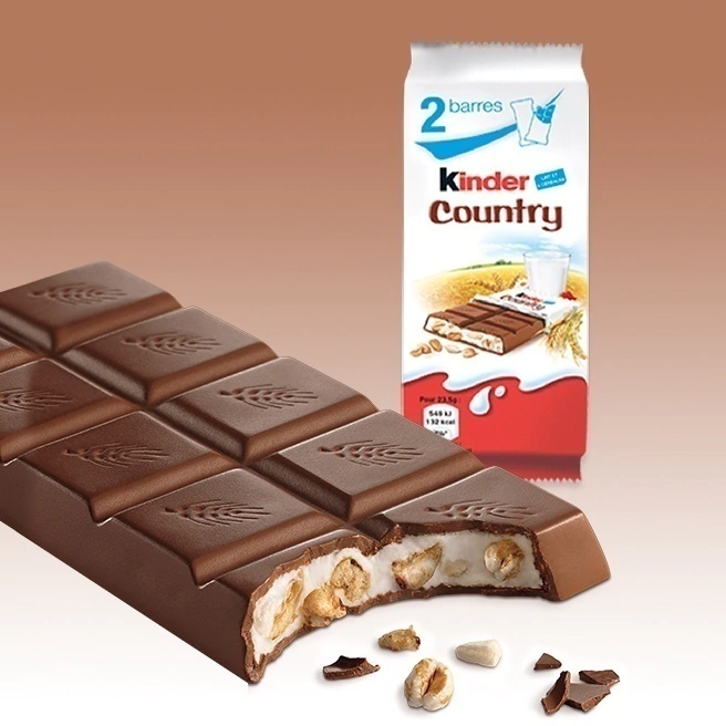 Chocolate importado da marca Kinder com 23,5 gramas. Chocolate importado da marca Kinder, com 23,5 gramas de cobertura ao leite e recheio de creme com cereais crocantes. O Kinder Country é perfeito para quem é apaixonado pelos chocolates da marca Italiana e também para quem gosta daqueles pedacinhos crocantes a cada mordida. Sabor: Country Origem: Itália Peso: 23,5g Alérgicos: Contém Glúten Pode conter Leite, Avelã, Soja e Outras Nozes.